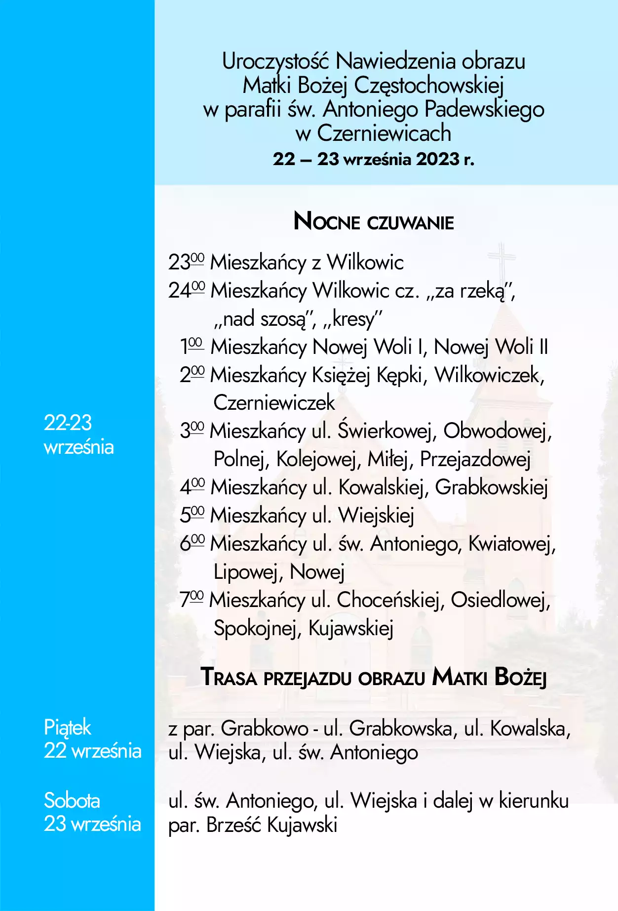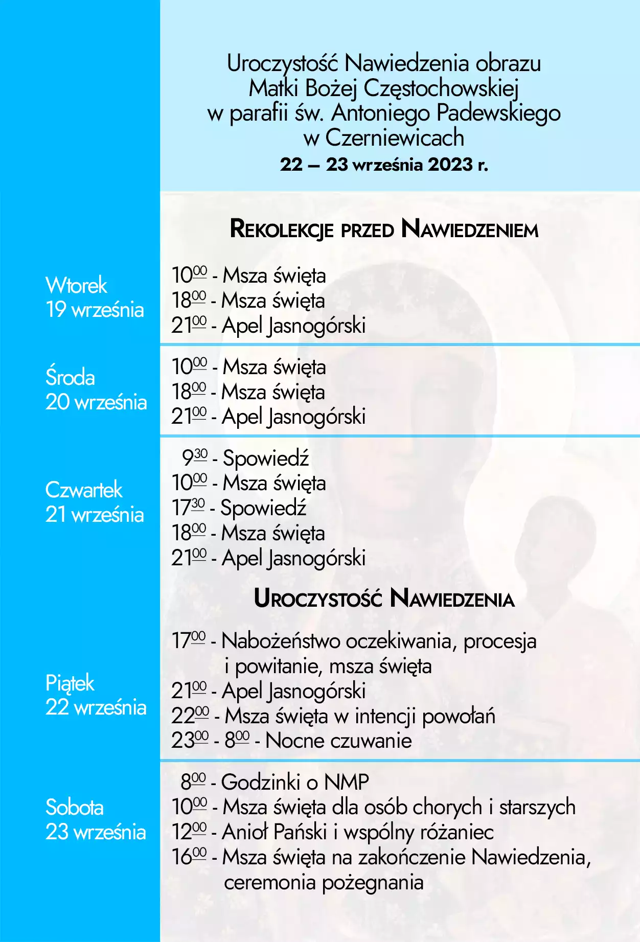 Nawiedzenie Obrazu MB Częstochowskiej – program